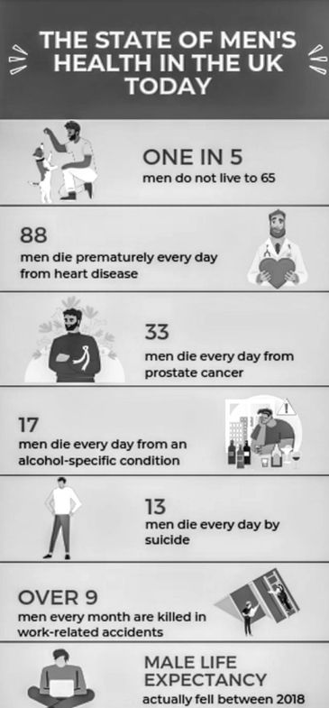 It is only lately that men's health has been brought to the forefront when it comes to discussing health matters. This was due to, mainly, a generational attitude were a man deals with his own problems as your father and his father did before him. Thankfully this is changing and people are more aware that help is available and that there is no stigma attached to requesting it.